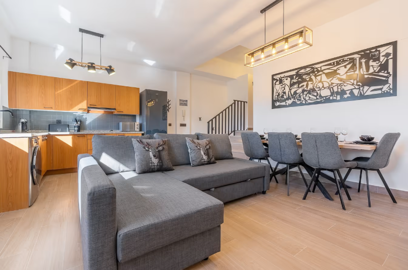 Con 2 dormitorios, zona de estar con sofá cama, 1 baño completo, cocina equipada y espacio suficiente para grupos o familias que quieren comodidad sin renunciar al estilo.